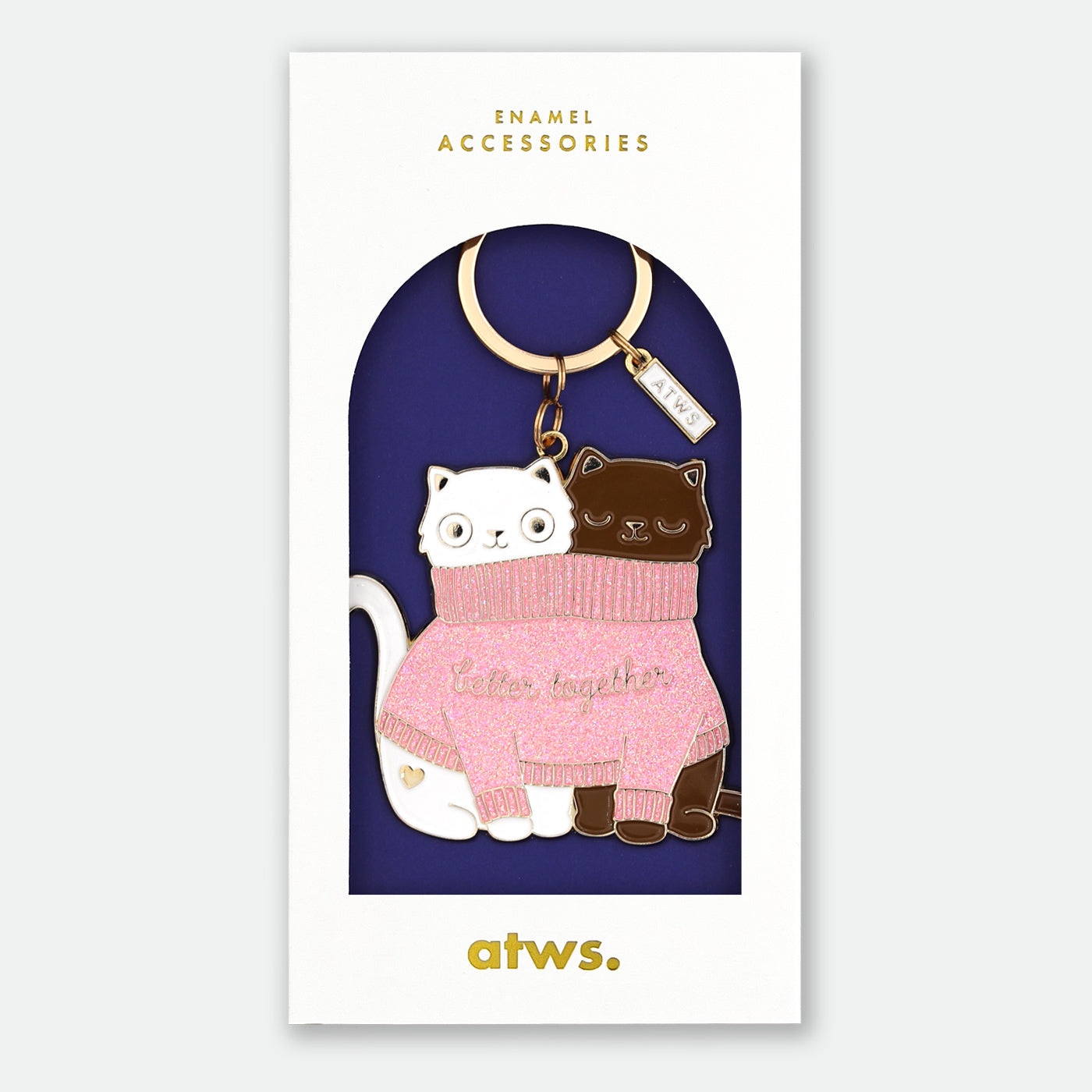 For cat lovers and cozy vibes, the 2 Cats in a Sweater keychain is an adorable addition! Featuring two cute cats snuggled up in cozy sweaters, it’s the purr-fect way to add some charm and warmth to your keys or bag. 🐱🧶