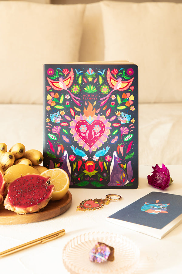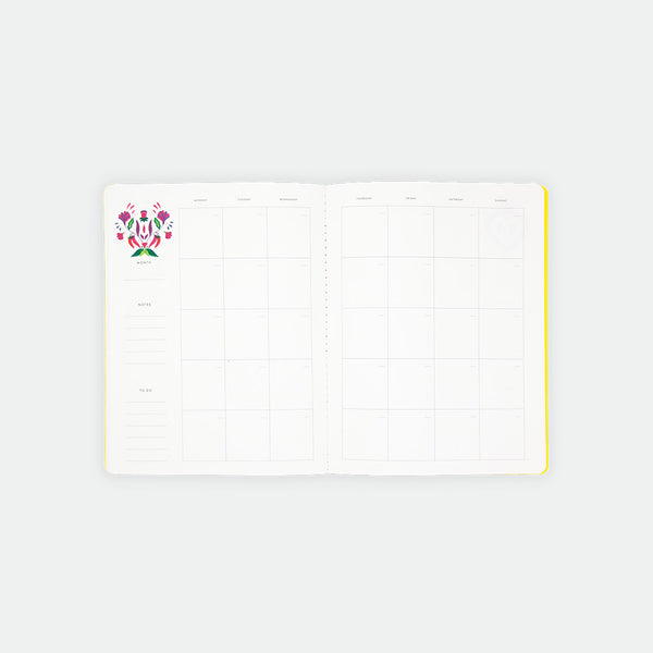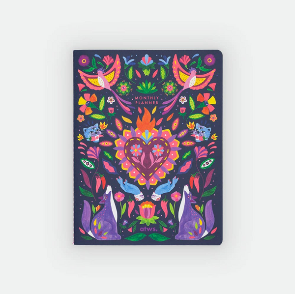 The Mexican Monthly Planner by All the Ways to Say captures the festive energy of Mexican culture. Its richly illustrated cover with gold foil details showcases bold patterns, bright colors and folkloric motifs, transforming your planning sessions into a creative and joyful ritual. Perfect for those who want their organization to reflect both style and cultural flair.