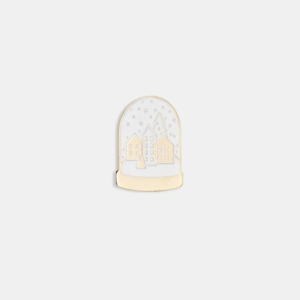 The Chic Snowball – Pin by All the Ways to Say captures the quiet charm of a snowy village inside a golden snow globe. Its delicate enamel finish and warm gold details make it a timeless little treasure — perfect for your coat, bag or scarf. A chic accessory that celebrates the season with elegance and sparkle.